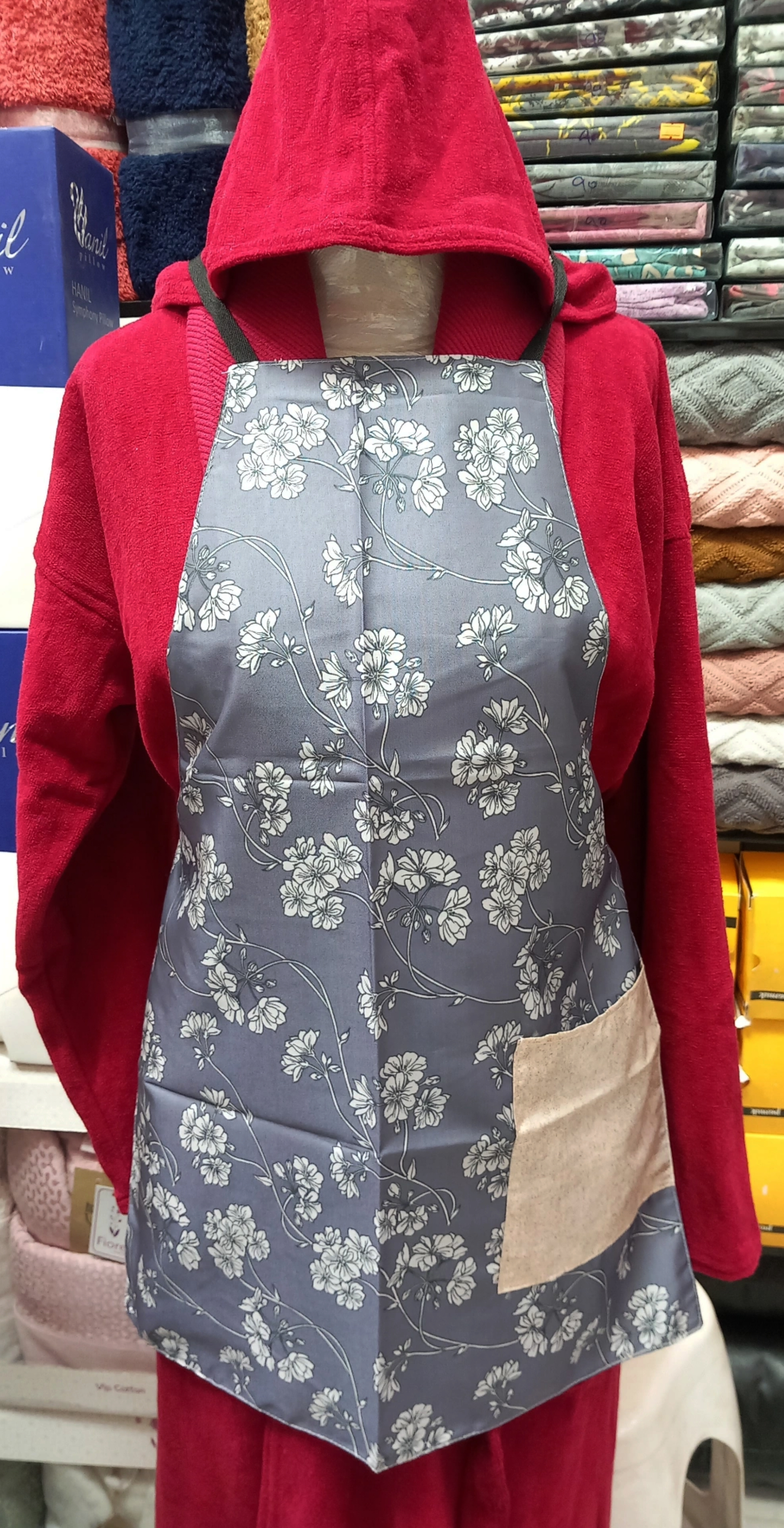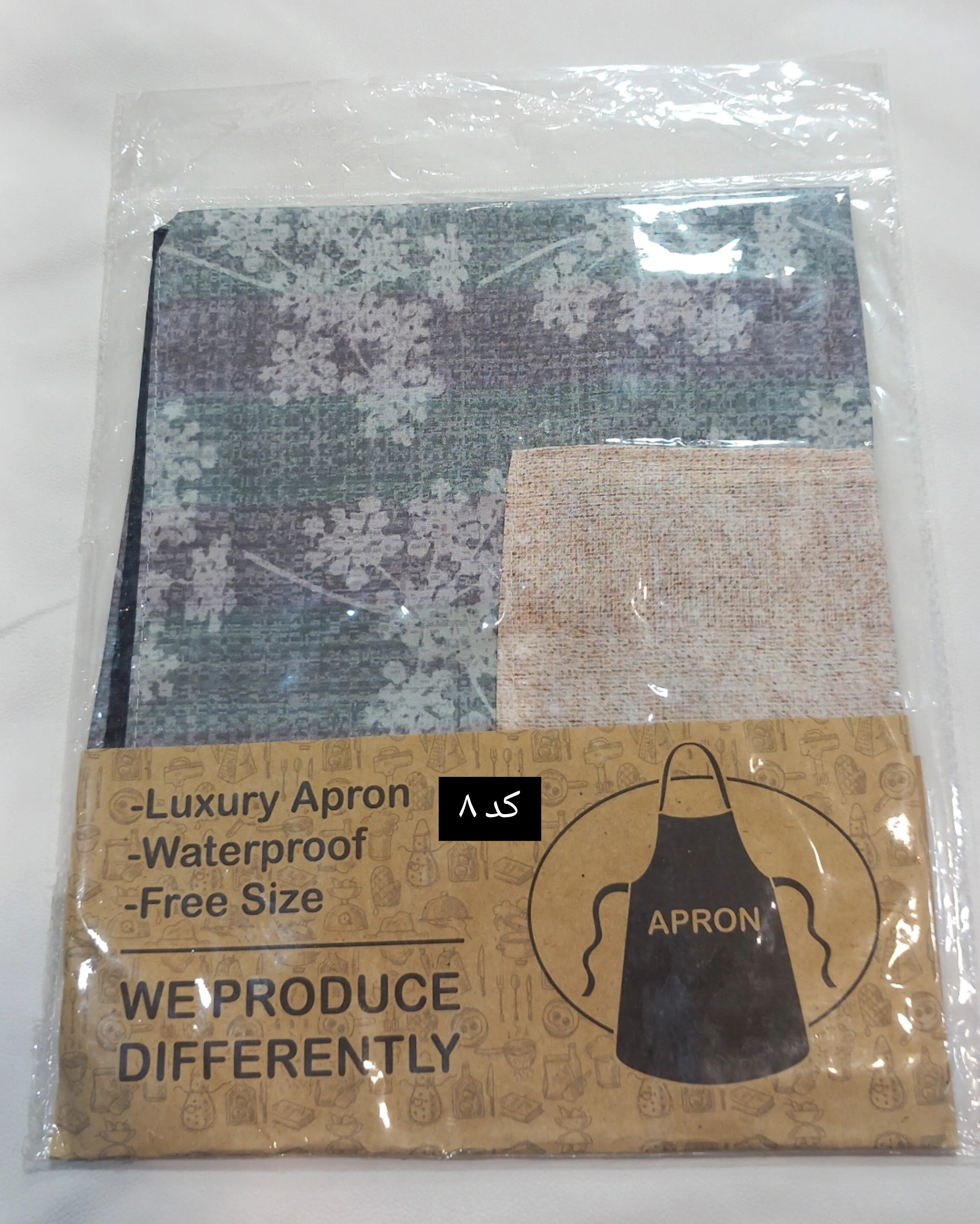 پیش بند با طراحی منحصر به فرد بسیار ضخیم است و همراه با پوشش پلاستیک ضد آب و لایه پلی استر و با طراحی روز دنیا ارائه می شود. پیشبند اپرون از پارچه های تولید شده که مقاومت و استحکام پیشبند را افزایش می دهد و همچنین در برابر رطوبت و آب مقاوم باشد.